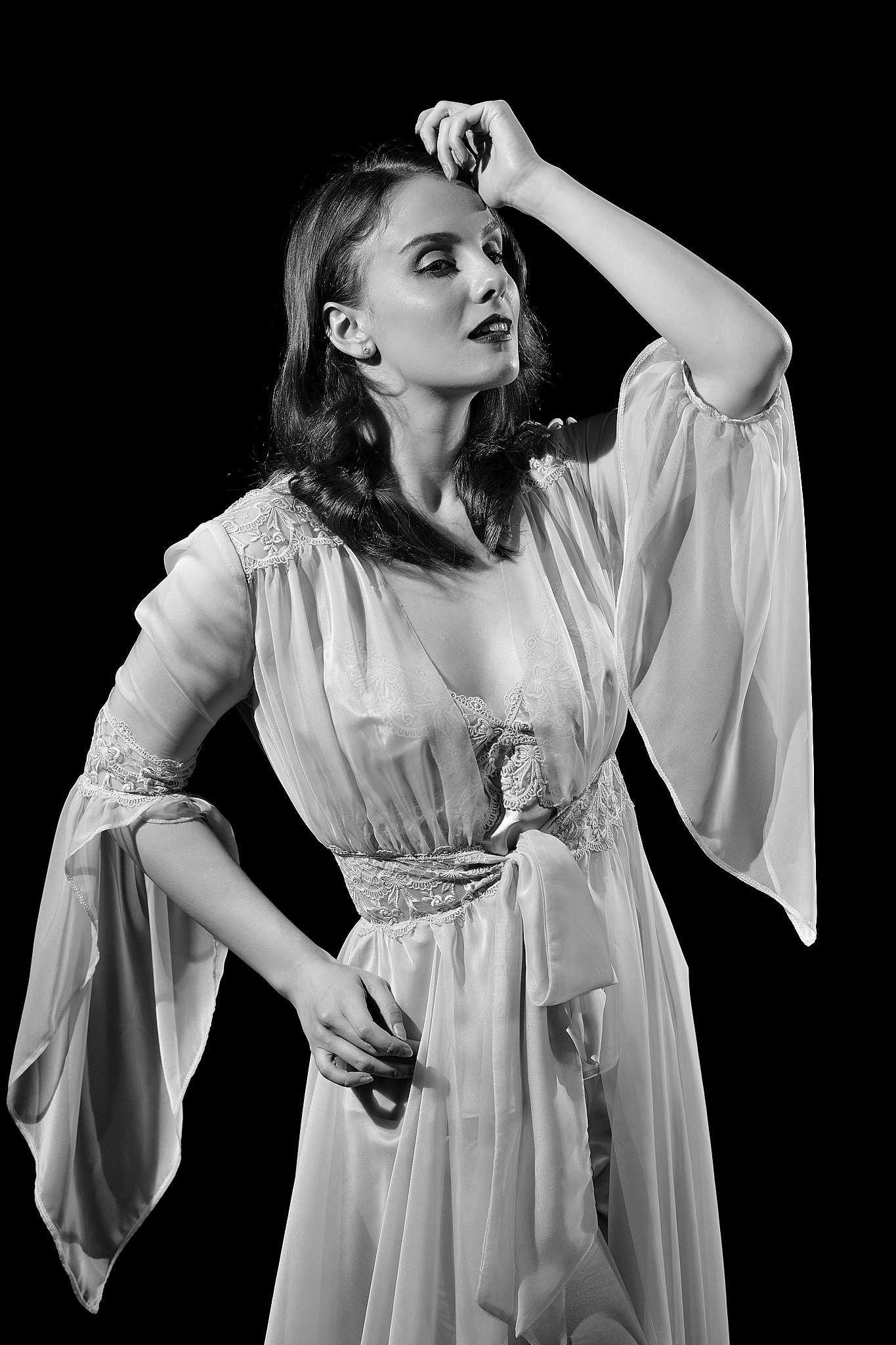 Classic Hollywood style photography using Fresnel lensed lights with Mina Von Vixen.