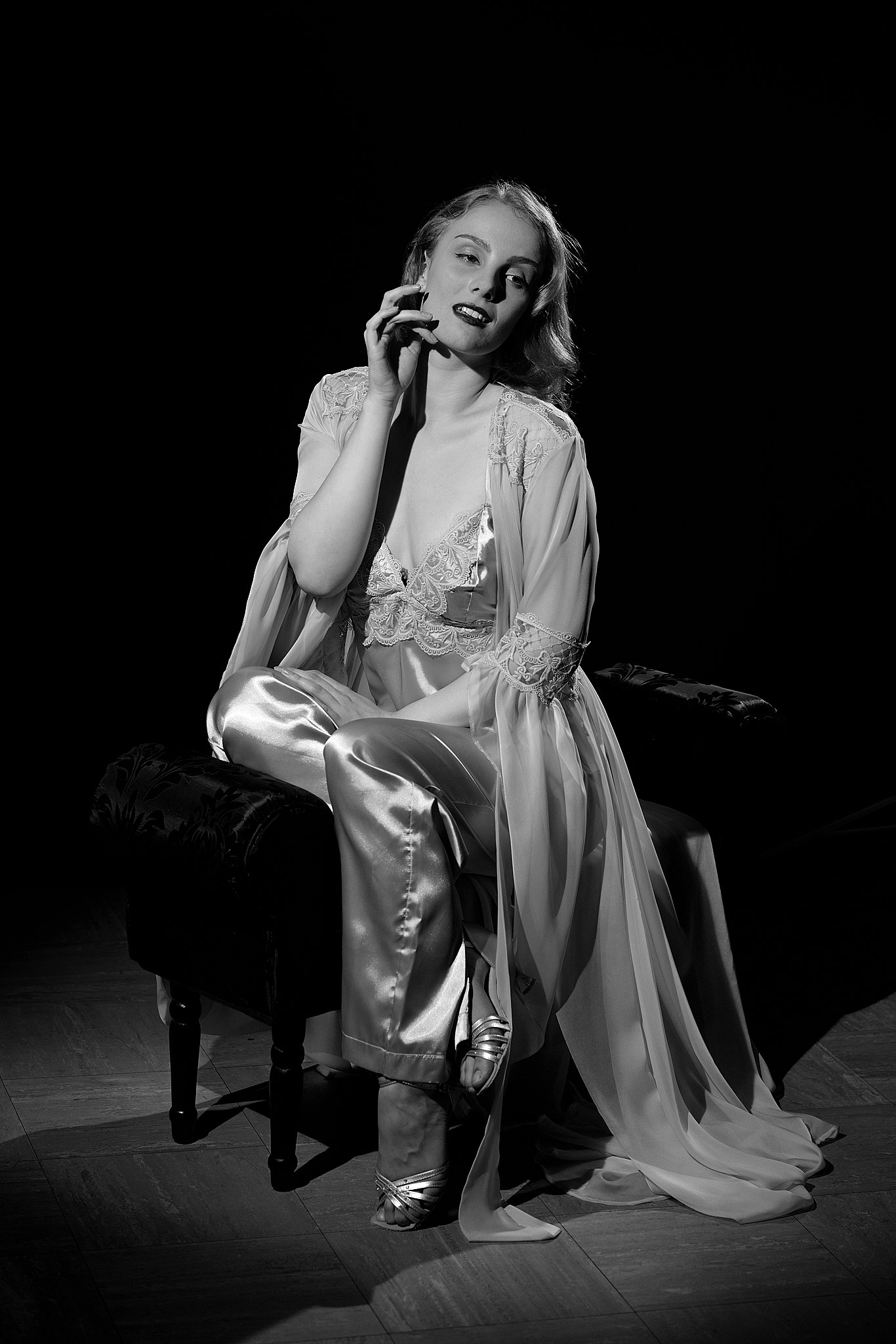 Classic Hollywood style photography using Fresnel lensed lights with Mina Von Vixen.